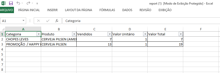 Assim que clicar em “Exportar para XLSX”, um arquivo, conforme a imagem abaixo, será salvo no seu computador com o nome “report”.