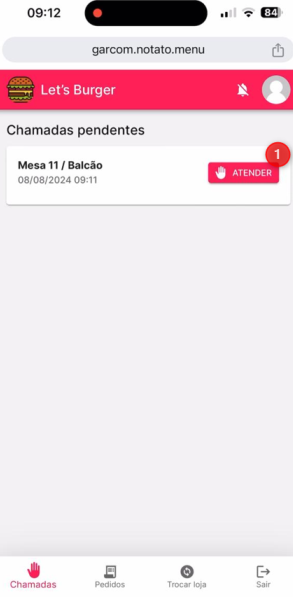 E aqui está um exemplo de chamada que você esperará enquanto usa o aplicativo Garçom Notato.