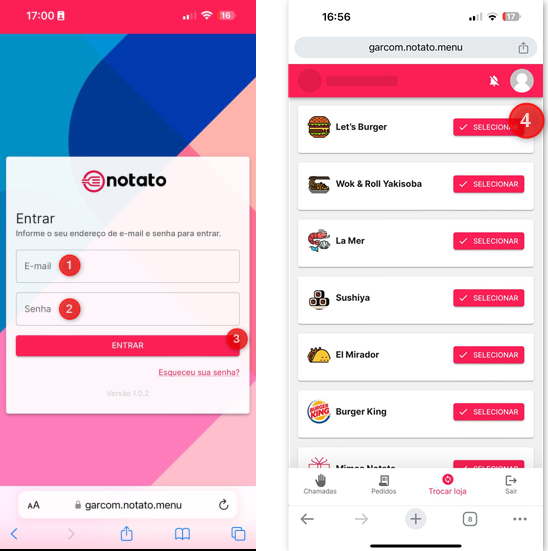 Em seguida, com a mesma conta que você já utiliza para acessar nosso sistema, efetue o login e selecione a sua loja.