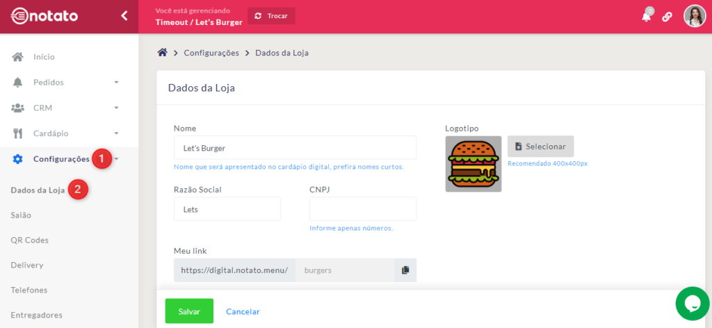 Em “Dados da Loja”, você conseguirá editar as informações básicas do seu estabelecimento, como: